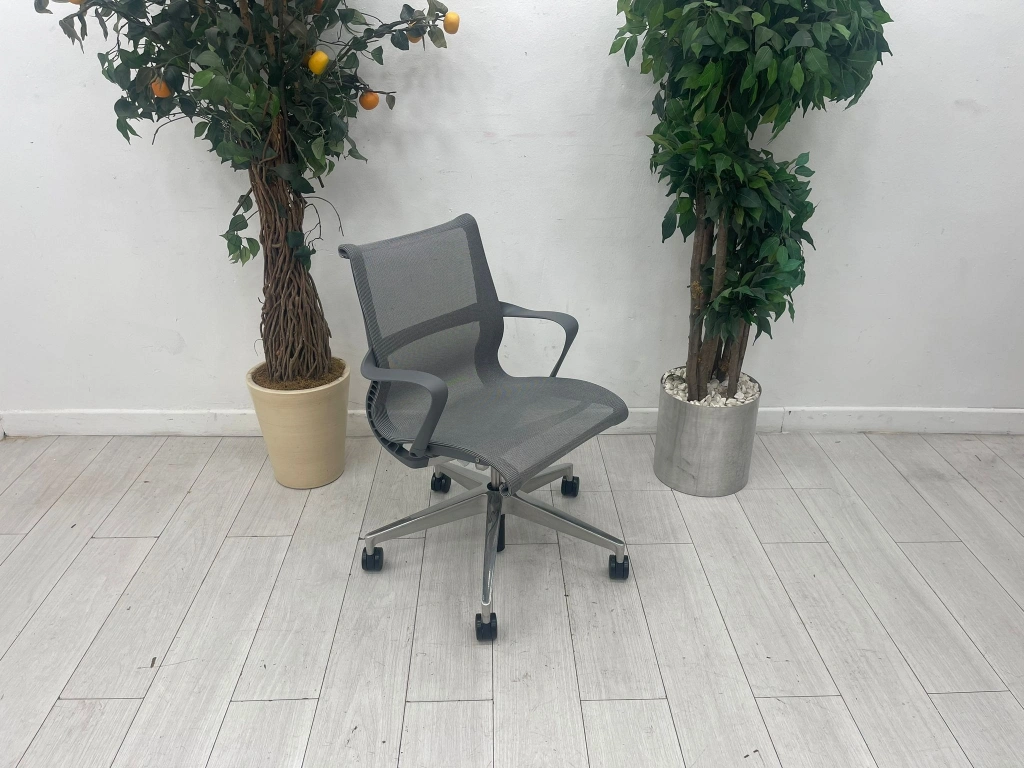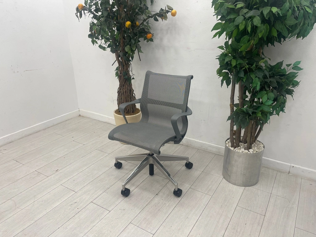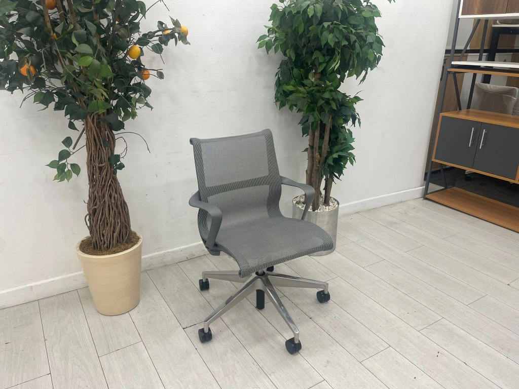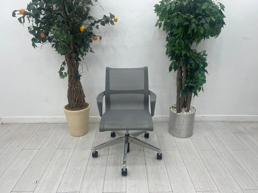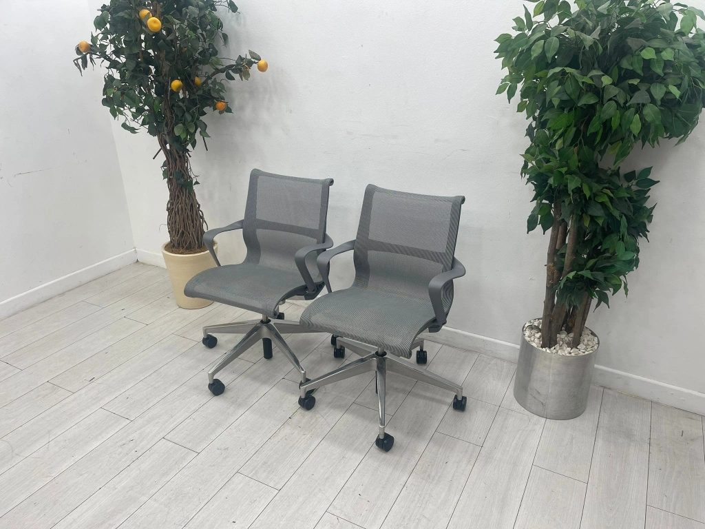 Herman miller setu çalışma sandalyesi, ofis, bekleme ve misafir alanlarında kullanıma uygun ikinci el bir seçenektir. Ürün, HERMAN MILLER marka çizgisi ile öne çıkar. Bekleme noktası, yönetici odası veya çalışma alanında dengeli bir yerleşim sağlar. Ürün kodu M2787 olarak kayıt altına alınmıştır.