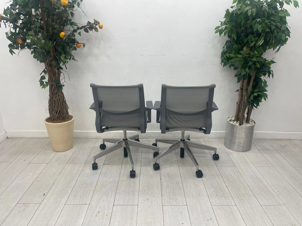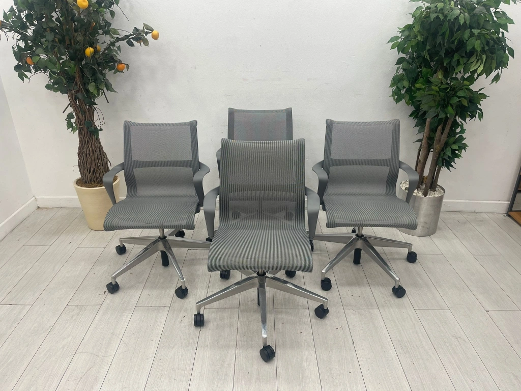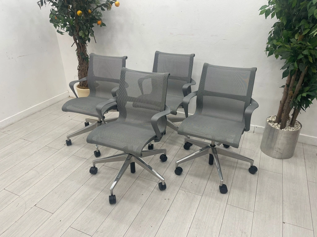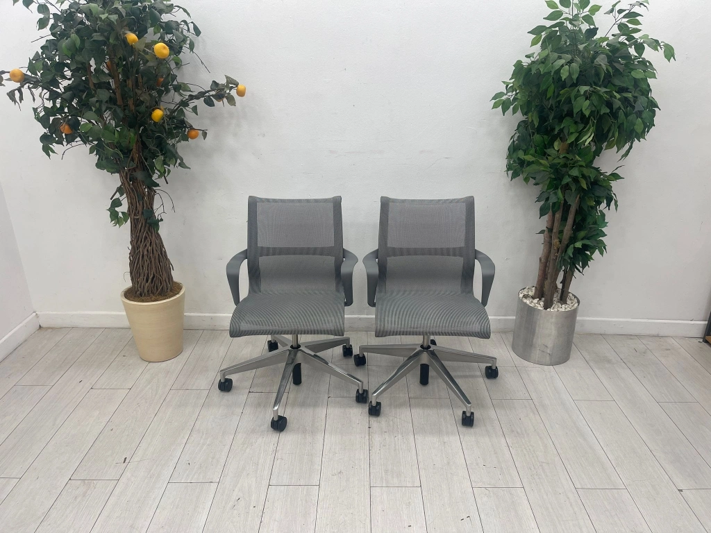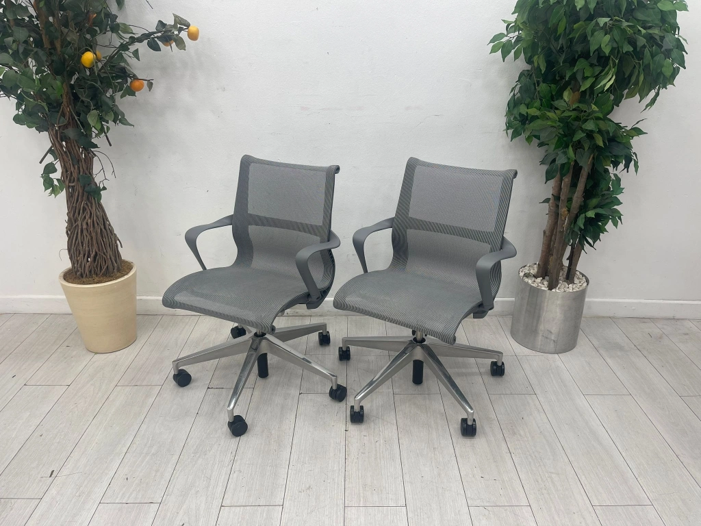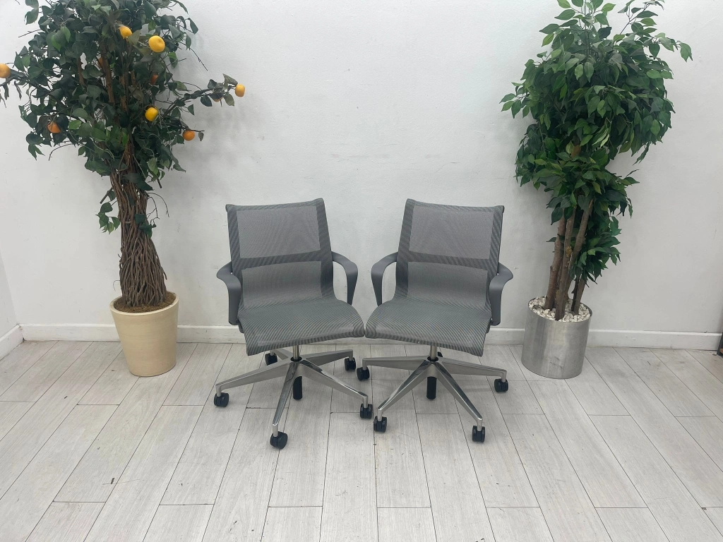 Herman miller setu çalışma sandalyesi, ofis, bekleme ve misafir alanlarında kullanıma uygun ikinci el bir seçenektir. Ürün, HERMAN MILLER marka çizgisi ile öne çıkar. Bekleme noktası, yönetici odası veya çalışma alanında dengeli bir yerleşim sağlar. Ürün kodu M2787 olarak kayıt altına alınmıştır.