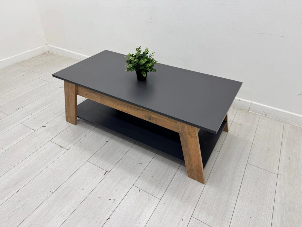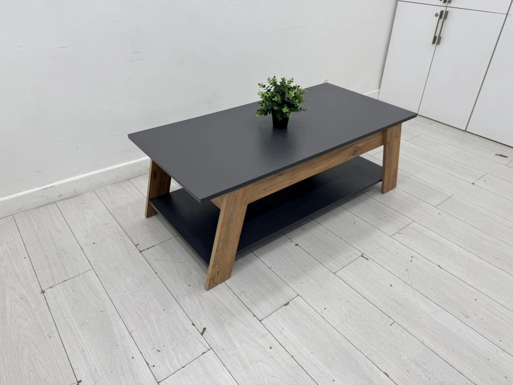 Dekoratif antrasit çift katlı orta sehpa, ofis, toplantı ve ortak çalışma alanlarında kullanıma uygun ikinci el bir seçenektir. Ürün, 122X60X44 ölçüsü ile öne çıkar. Çalışma düzeni, toplantı akışı veya yan kullanım alanı oluşturmak için rahatlıkla değerlendirilebilir. Ürün kodu M4596 olarak kayıt altına alınmıştır.