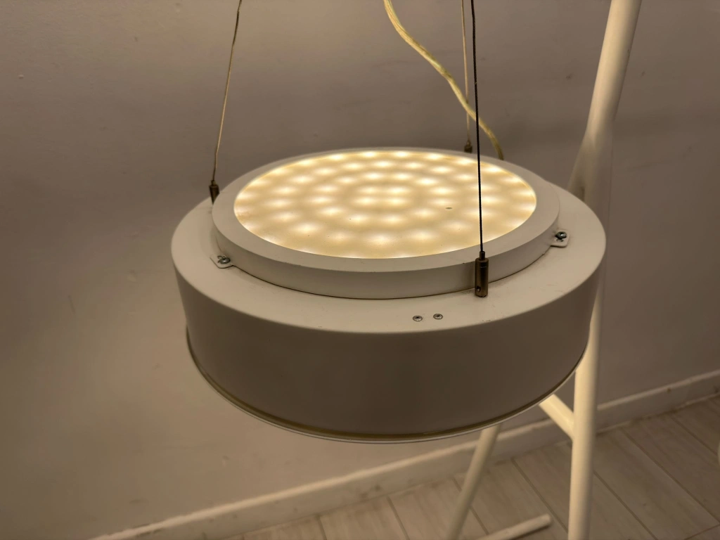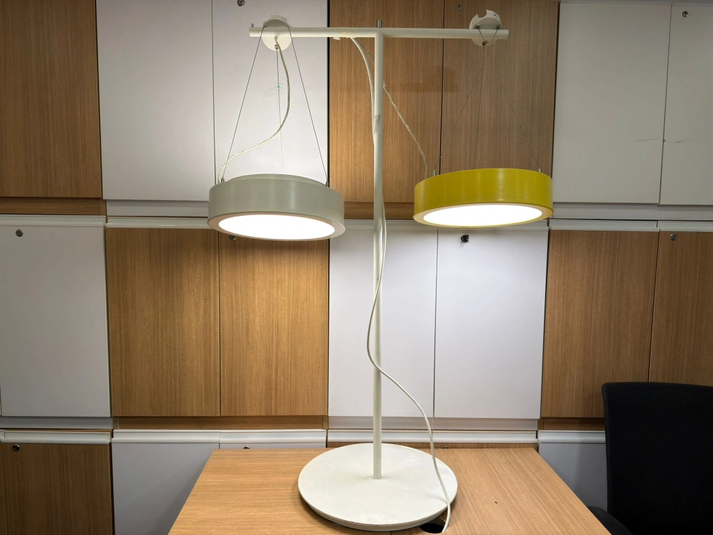 Yuvarlak led sarkıtmalı lambader, çalışma alanlarında tamamlayıcı aydınlatma ihtiyacına cevap verebilecek ikinci el bir üründür. Ürün, LED aydınlatma yapısı ile öne çıkar. Masa çevresi, koridor veya ortak alanlarda dengeli bir aydınlatma etkisi oluşturur. Ürün kodu M4628 olarak kayıt altına alınmıştır.