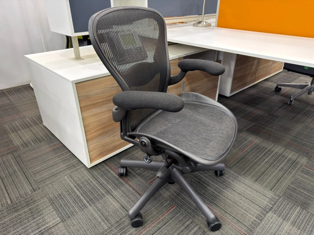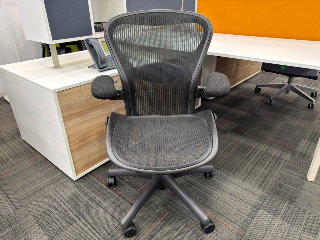 Herman miller aeron b size yönetici çalışma koltuğu, ofis, bekleme ve misafir alanlarında kullanıma uygun ikinci el bir seçenektir. Ürün, HERMAN MILLER marka çizgisi, LED aydınlatma yapısı ile öne çıkar. Bekleme noktası, yönetici odası veya çalışma alanında dengeli bir yerleşim sağlar. Ürün kodu M4689 olarak kayıt altına alınmıştır.
