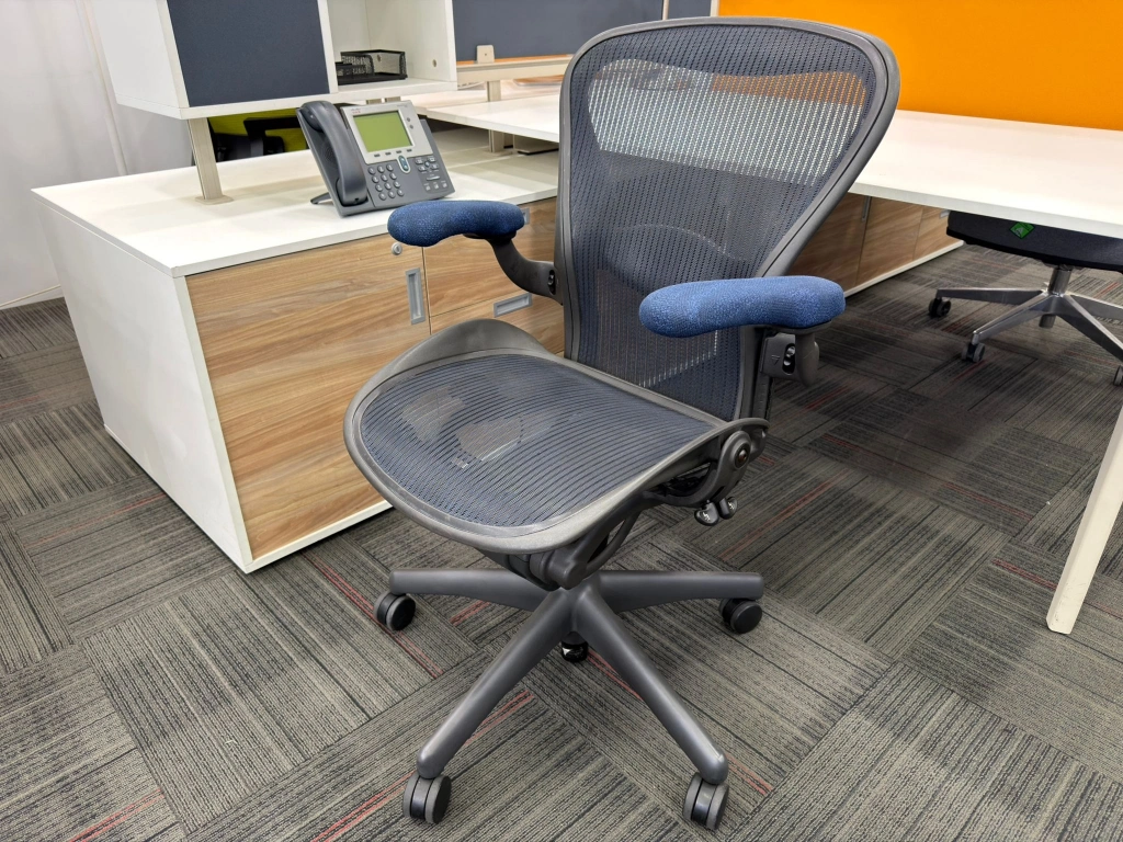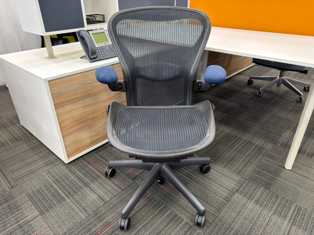 Herman miller aeron b size yönetici çalışma koltuğu, ofis, bekleme ve misafir alanlarında kullanıma uygun ikinci el bir seçenektir. Ürün, HERMAN MILLER marka çizgisi ile öne çıkar. Bekleme noktası, yönetici odası veya çalışma alanında dengeli bir yerleşim sağlar. Ürün kodu M4693 olarak kayıt altına alınmıştır.