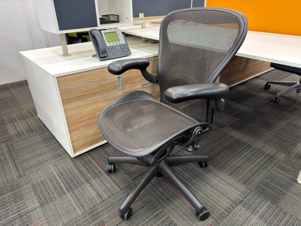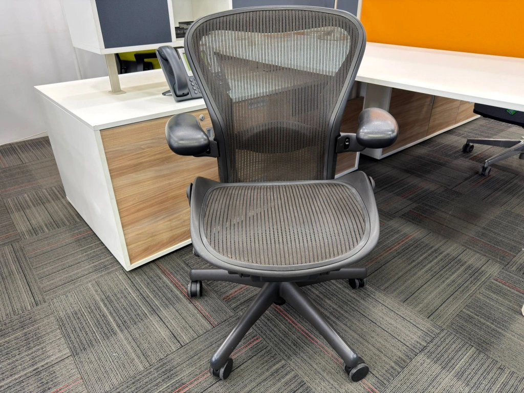 Herman miller aeron b size yönetici çalışma koltuğu, ofis, bekleme ve misafir alanlarında kullanıma uygun ikinci el bir seçenektir. Ürün, HERMAN MILLER marka çizgisi, deri kaplaması ile öne çıkar. Bekleme noktası, yönetici odası veya çalışma alanında dengeli bir yerleşim sağlar. Ürün kodu M4694 olarak kayıt altına alınmıştır.