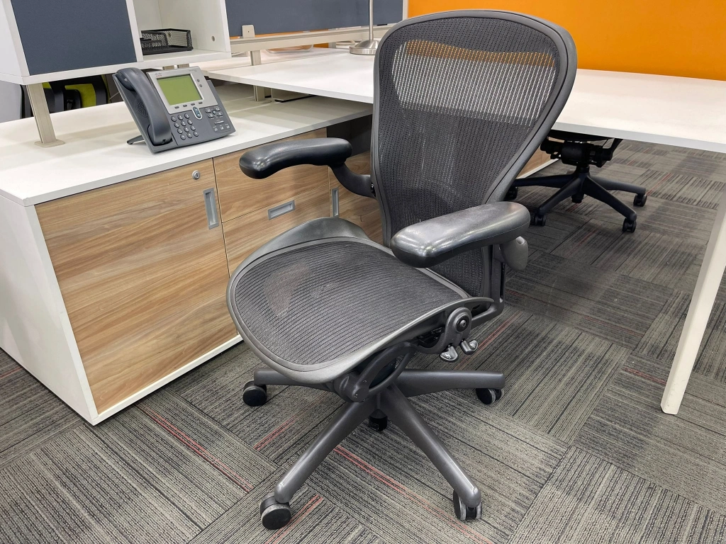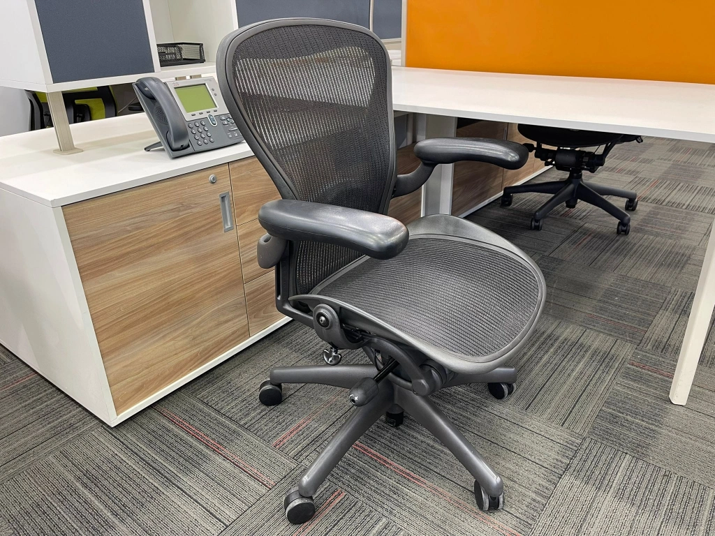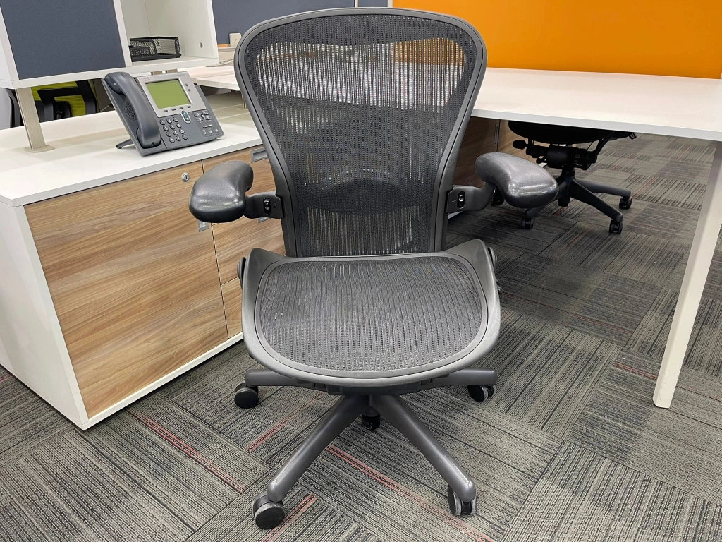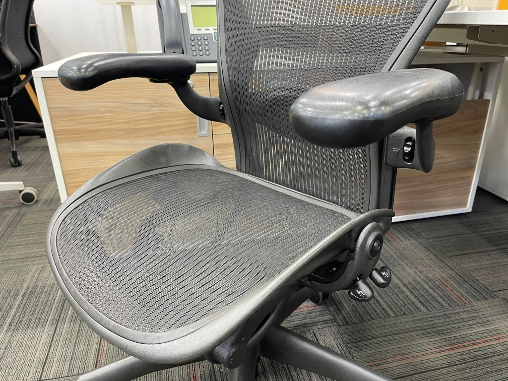 Herman miller aeron b size yönetici çalışma koltuğu, ofis, bekleme ve misafir alanlarında kullanıma uygun ikinci el bir seçenektir. Ürün, HERMAN MILLER marka çizgisi ile öne çıkar. Bekleme noktası, yönetici odası veya çalışma alanında dengeli bir yerleşim sağlar. Ürün kodu M4704 olarak kayıt altına alınmıştır.